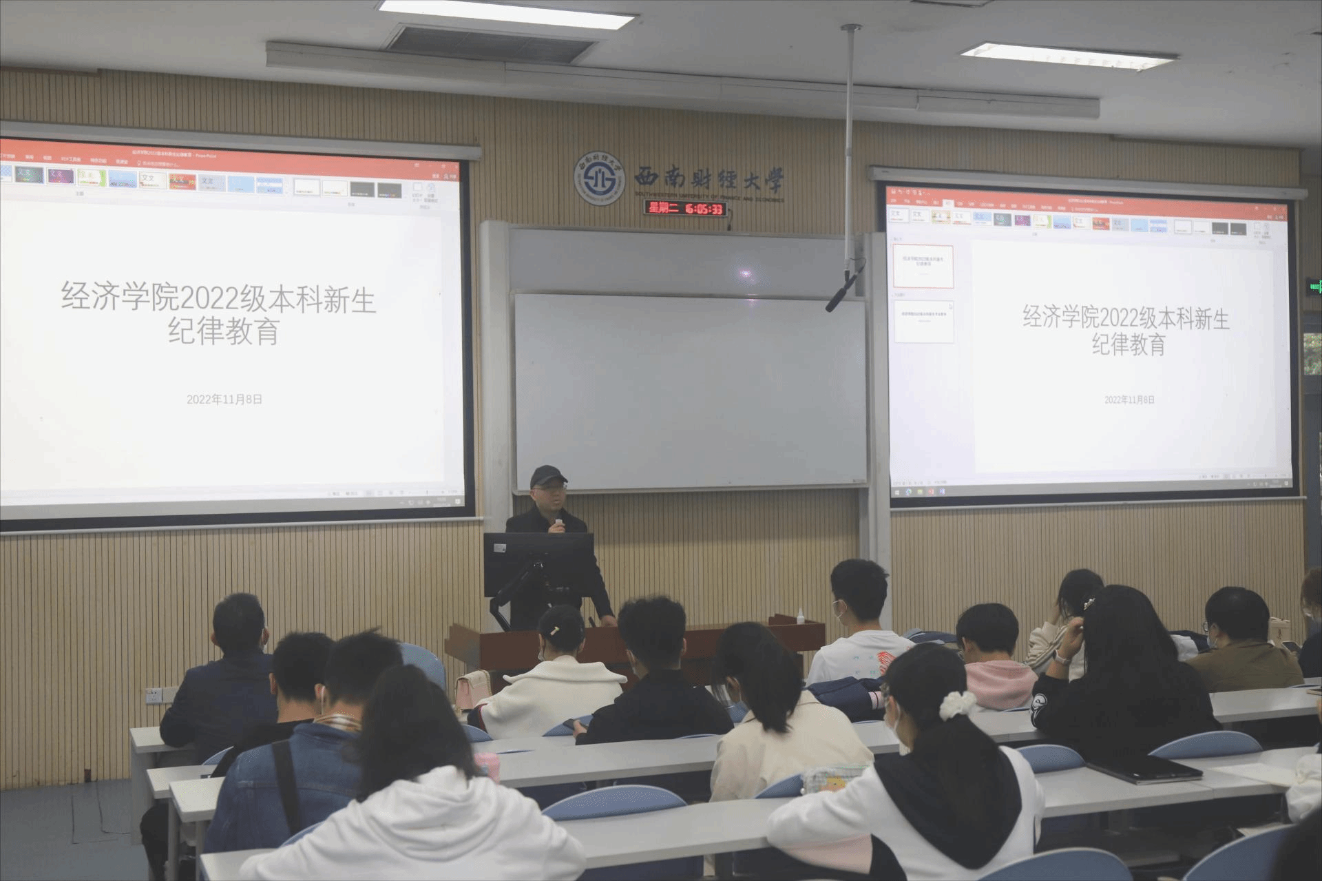 11月8日,必赢242net官网2022级本科新生举行纪律教育及专业教育大会,副书记胡舒、教学副院长韩文龙主持会议并做了专题发言,本科教学秘书方小书等参会。