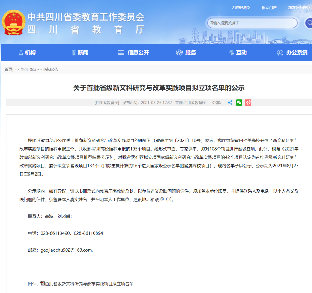 近日,教育部发布了《关于首批新文科研究与改革实践项目拟立项项目名单的公示》,四川省教育厅公布了首批省级新文科研究与改革实践项目名单,必赢官网盖凯程教授主持的《四制协同、五化联动、六位一体——经济学拔尖创新人才培养创新与实践》课题获批立项。
